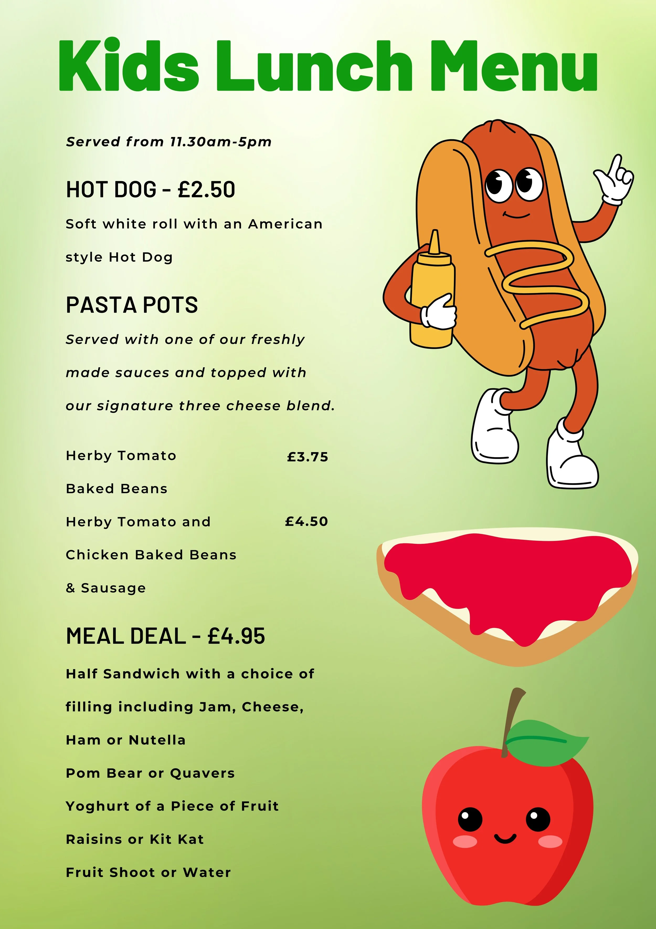 Please note: Our menu and prices may change from time to time. The prices and options shown in our café are always the correct and current ones.